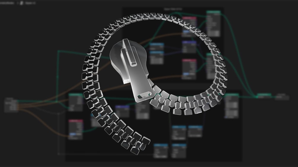 Customizable zippers controlled by Curves in Geometry Nodes.